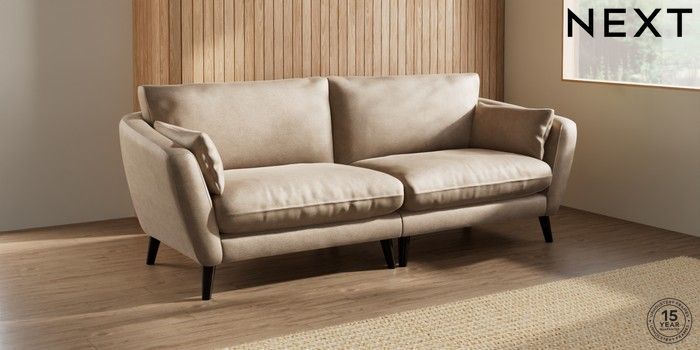 6.12.1 Buy Orlo Relaxed Sit 4 Seater Sofa Luxe Chenille Mid Camel Beige Retro Tapered - Dark from the Next UK online shop Click here to use our accessible website