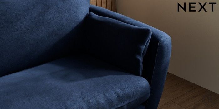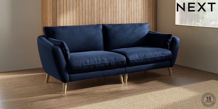 6.12.1 Buy Orlo Relaxed Sit 4 Seater Sofa Luxe Chenille Navy Blue Retro Tapered - Light from the Next UK online shop Click here to use our accessible website