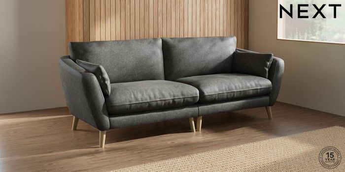 6.12.1 Buy Orlo Relaxed Sit 4 Seater Sofa Plush Chenille Dark Grey Retro Tapered - Light from the Next UK online shop Click here to use our accessible website