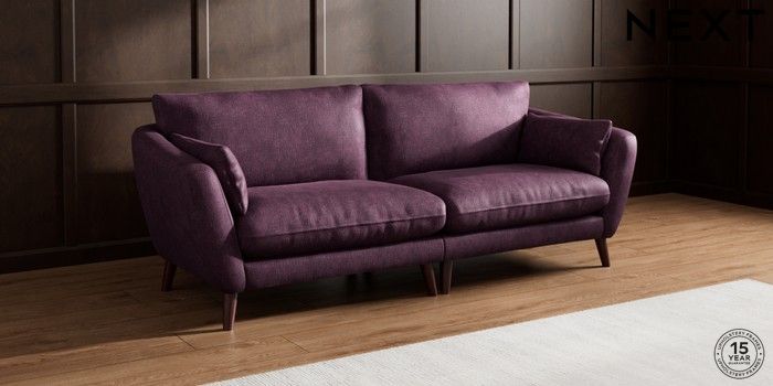 6.12.1 Buy Orlo Relaxed Sit 4 Seater Sofa Plush Chenille Dark Plum Purple Retro Tapered - Dark Brown from the Next UK online shop Click here to use our accessible website