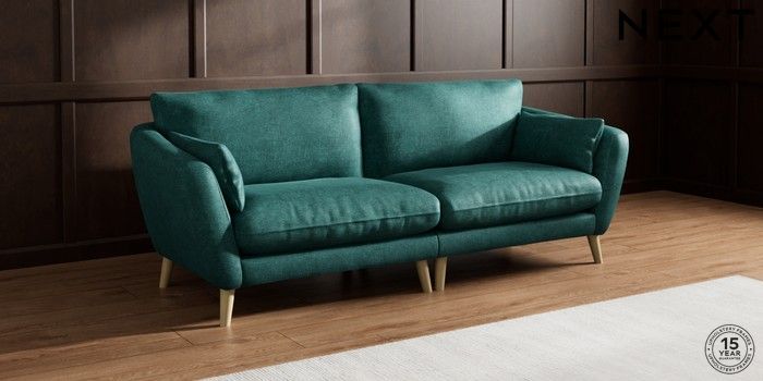 6.12.1 Buy Orlo Relaxed Sit 4 Seater Sofa Plush Chenille Dark Teal Green Retro Tapered - Light from the Next UK online shop Click here to use our accessible website