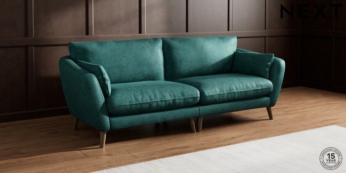 6.12.1 Buy Orlo Relaxed Sit 4 Seater Sofa Plush Chenille Dark Teal Green Retro Tapered - Mid from the Next UK online shop Click here to use our accessible website