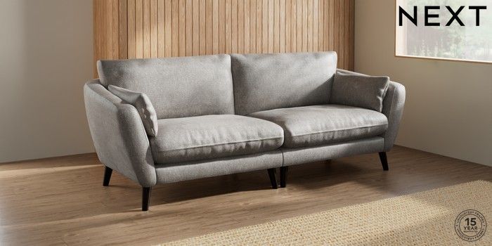 6.12.1 Buy Orlo Relaxed Sit 4 Seater Sofa Plush Chenille Light Grey Retro Tapered - Dark from the Next UK online shop Click here to use our accessible website