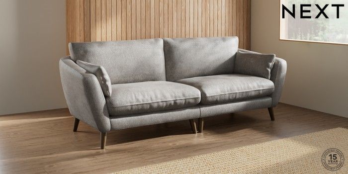 6.12.1 Buy Orlo Relaxed Sit 4 Seater Sofa Plush Chenille Light Grey Retro Tapered - Mid from the Next UK online shop Click here to use our accessible website