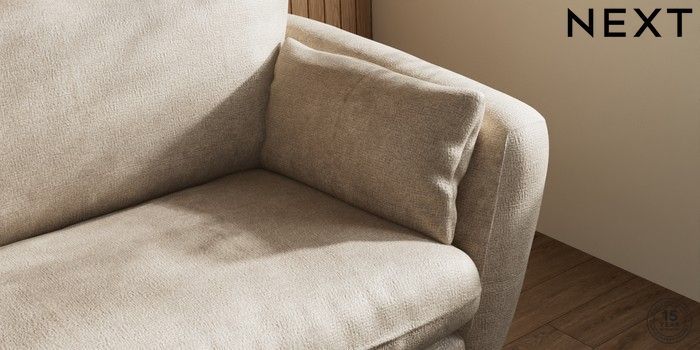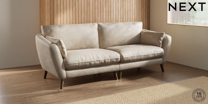 6.12.1 Buy Orlo Relaxed Sit 4 Seater Sofa Plush Chenille Light Natural Retro Tapered - Mid from the Next UK online shop Click here to use our accessible website