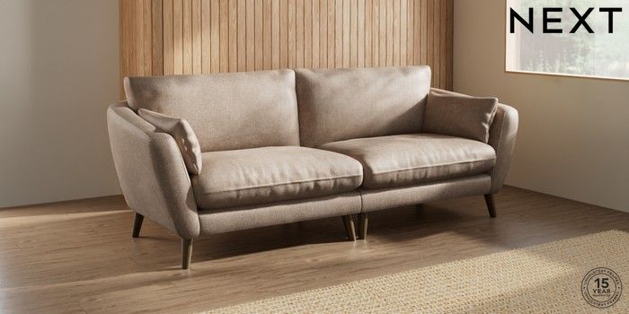 6.12.1 Buy Orlo Relaxed Sit 4 Seater Sofa Plush Chenille Mid Natural Retro Tapered - Mid from the Next UK online shop Click here to use our accessible website
