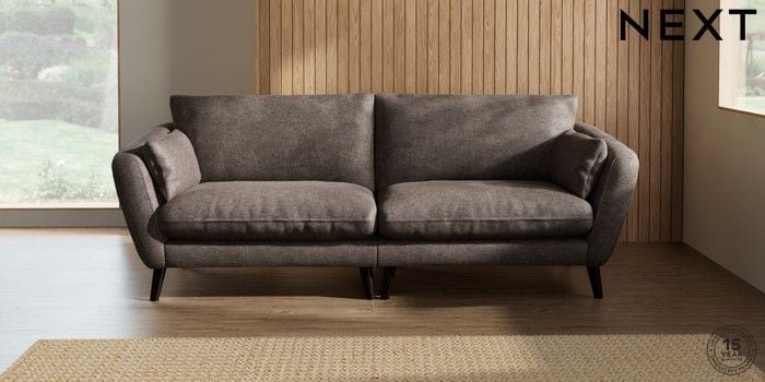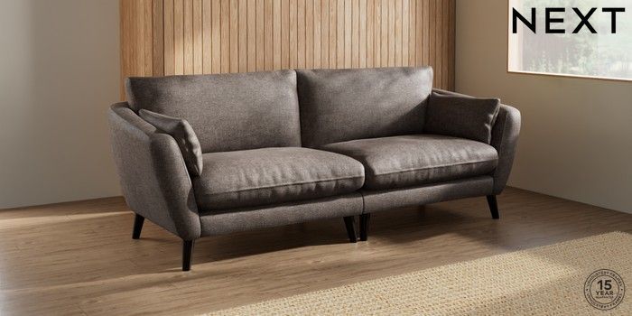 6.12.1 Buy Orlo Relaxed Sit 4 Seater Sofa Plush Chenille Mink Brown Retro Tapered - Dark from the Next UK online shop Click here to use our accessible website