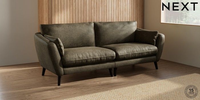 6.12.1 Buy Orlo Relaxed Sit 4 Seater Sofa Plush Chenille Moss Green Retro Tapered - Dark from the Next UK online shop Click here to use our accessible website
