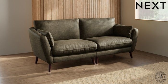 6.12.1 Buy Orlo Relaxed Sit 4 Seater Sofa Plush Chenille Moss Green Retro Tapered - Dark Brown from the Next UK online shop Click here to use our accessible website