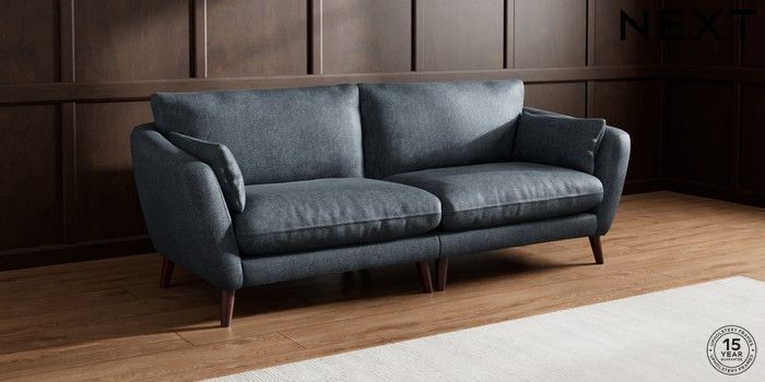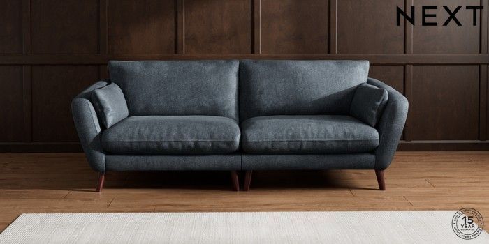 6.12.1 Buy Orlo Relaxed Sit 4 Seater Sofa Plush Chenille Slate Blue Retro Tapered - Dark Brown from the Next UK online shop Click here to use our accessible website