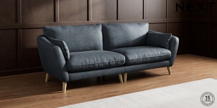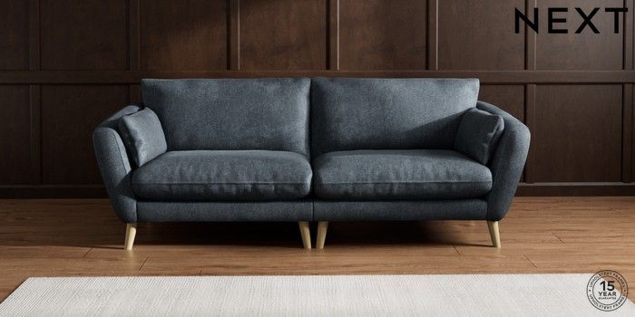 6.12.1 Buy Orlo Relaxed Sit 4 Seater Sofa Plush Chenille Slate Blue Retro Tapered - Light from the Next UK online shop Click here to use our accessible website