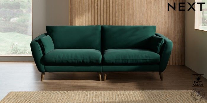 6.12.1 Buy Orlo Relaxed Sit 4 Seater Sofa Plush Velvet Easy Clean Bottle Green Retro Tapered - Mid from the Next UK online shop Click here to use our accessible website