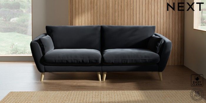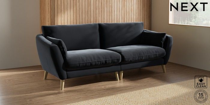 6.12.1 Buy Orlo Relaxed Sit 4 Seater Sofa Plush Velvet Easy Clean Charcoal Grey Retro Tapered - Light from the Next UK online shop Click here to use our accessible website