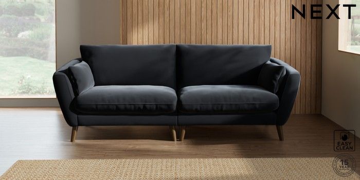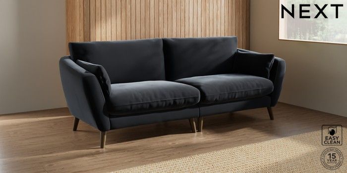 6.12.1 Buy Orlo Relaxed Sit 4 Seater Sofa Plush Velvet Easy Clean Charcoal Grey Retro Tapered - Mid from the Next UK online shop Click here to use our accessible website
