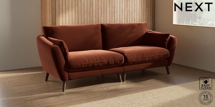 6.12.1 Buy Orlo Relaxed Sit 4 Seater Sofa Plush Velvet Easy Clean Ginger Orange Retro Tapered - Mid from the Next UK online shop Click here to use our accessible website
