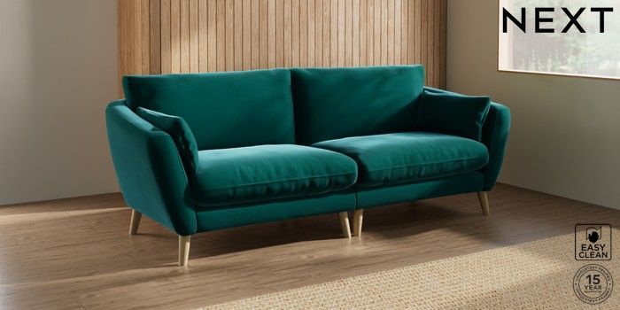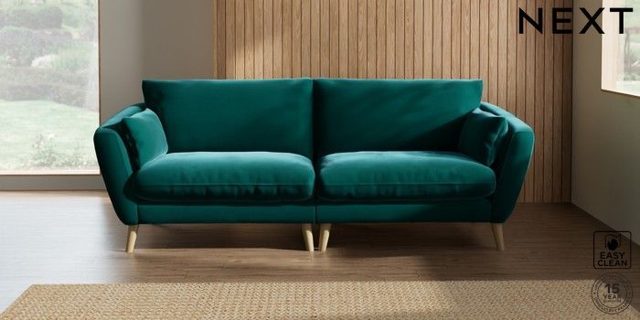 6.12.1 Buy Orlo Relaxed Sit 4 Seater Sofa Plush Velvet Easy Clean Juniper Green Retro Tapered - Light from the Next UK online shop Click here to use our accessible website