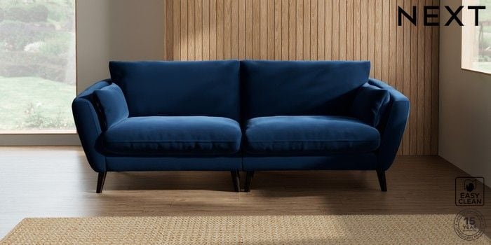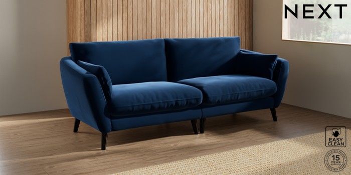 6.12.1 Buy Orlo Relaxed Sit 4 Seater Sofa Plush Velvet Easy Clean Navy Blue Retro Tapered - Dark from the Next UK online shop Click here to use our accessible website