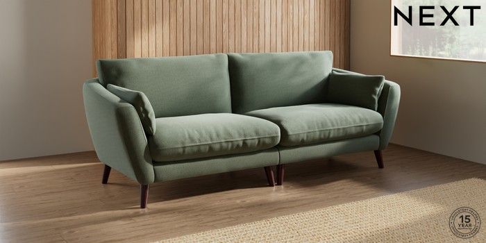 6.12.1 Buy Orlo Relaxed Sit 4 Seater Sofa Relaxed Linen Look Dark Green Retro Tapered - Dark Brown from the Next UK online shop Click here to use our accessible website