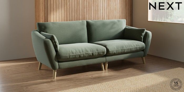 6.12.1 Buy Orlo Relaxed Sit 4 Seater Sofa Relaxed Linen Look Dark Green Retro Tapered - Light from the Next UK online shop Click here to use our accessible website