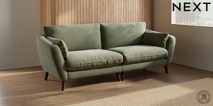 7.0.3 Buy Orlo Relaxed Sit 4 Seater Sofa Ripple Chenille Mid Moss Green Retro Tapered - Dark Brown from the Next UK online shop Click here to use our accessible website