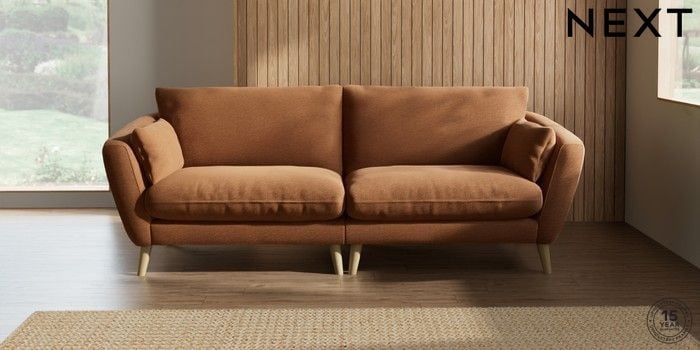 6.12.1 Buy Orlo Relaxed Sit 4 Seater Sofa Ripple Chenille Mid Rust Brown Retro Tapered - Light from the Next UK online shop Click here to use our accessible website