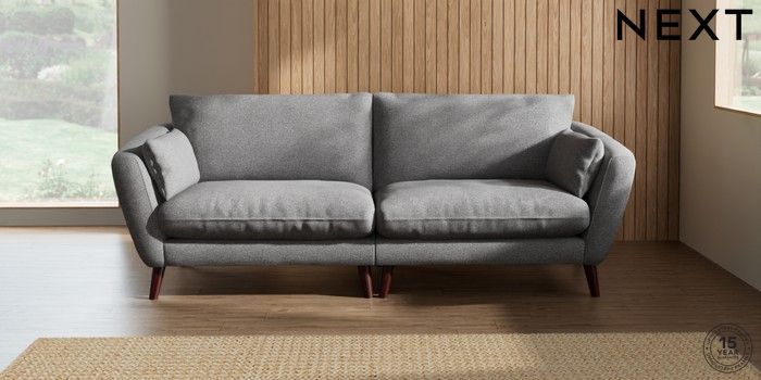 6.12.1 Buy Orlo Relaxed Sit 4 Seater Sofa Studio Chenille Mid Grey Retro Tapered - Dark Brown from the Next UK online shop Click here to use our accessible website