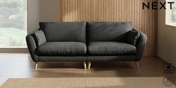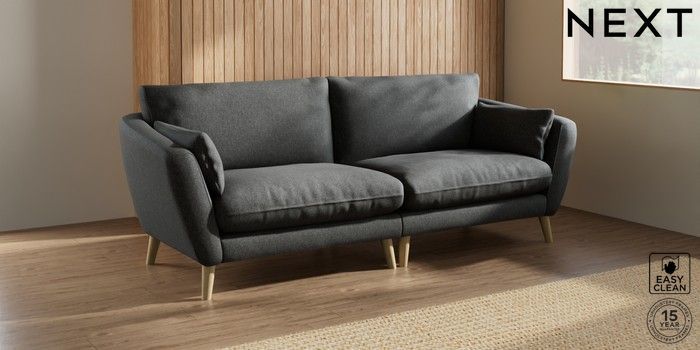 6.12.1 Buy Orlo Relaxed Sit 4 Seater Sofa Tweedy Blend Easy Clean Charcoal Grey Retro Tapered - Light from the Next UK online shop Click here to use our accessible website