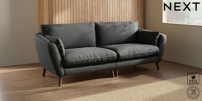 6.12.1 Buy Orlo Relaxed Sit 4 Seater Sofa Tweedy Blend Easy Clean Charcoal Grey Retro Tapered - Mid from the Next UK online shop Click here to use our accessible website