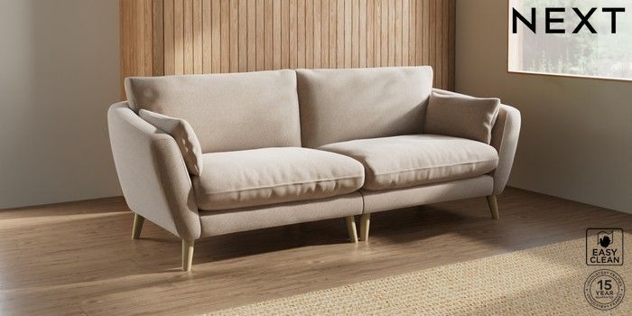 6.12.1 Buy Orlo Relaxed Sit 4 Seater Sofa Tweedy Blend Easy Clean Light Dove Natural Retro Tapered - Light from the Next UK online shop Click here to use our accessible website