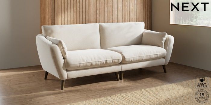 6.12.1 Buy Orlo Relaxed Sit 4 Seater Sofa Tweedy Blend Easy Clean Oyster Retro Tapered - Mid from the Next UK online shop Click here to use our accessible website