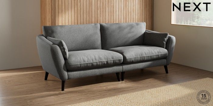 6.12.1 Buy Orlo Relaxed Sit 4 Seater Sofa Tweedy Chenille Dark Grey Retro Tapered - Dark from the Next UK online shop Click here to use our accessible website