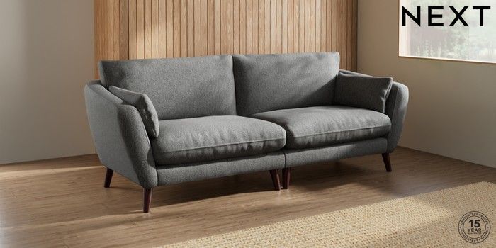 6.12.1 Buy Orlo Relaxed Sit 4 Seater Sofa Tweedy Chenille Dark Grey Retro Tapered - Dark Brown from the Next UK online shop Click here to use our accessible website
