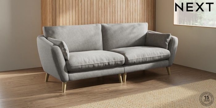6.12.1 Buy Orlo Relaxed Sit 4 Seater Sofa Tweedy Chenille Mid Grey Retro Tapered - Light from the Next UK online shop Click here to use our accessible website