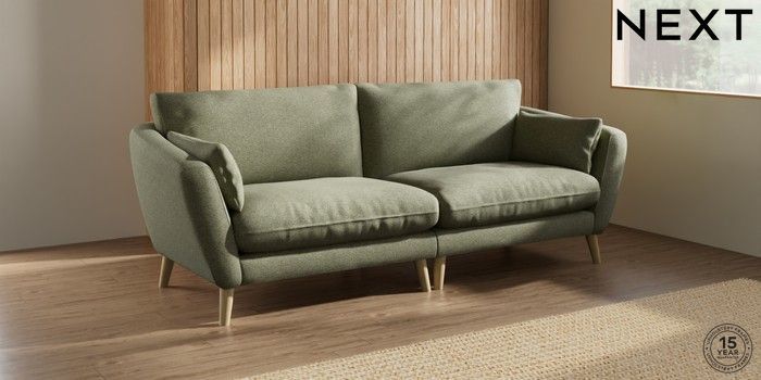 6.12.1 Buy Orlo Relaxed Sit 4 Seater Sofa Tweedy Chenille Mid Moss Green Retro Tapered - Light from the Next UK online shop Click here to use our accessible website