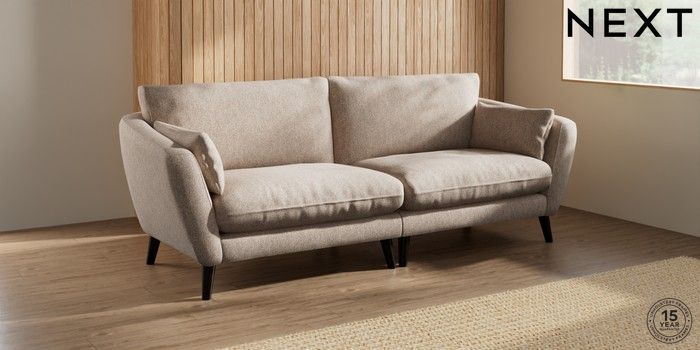6.12.1 Buy Orlo Relaxed Sit 4 Seater Sofa Tweedy Chenille Mid Natural Retro Tapered - Dark from the Next UK online shop Click here to use our accessible website