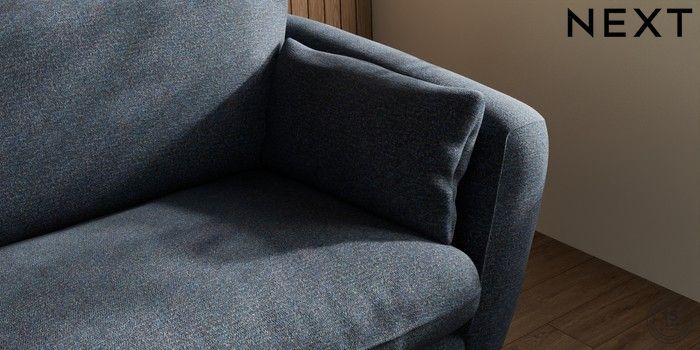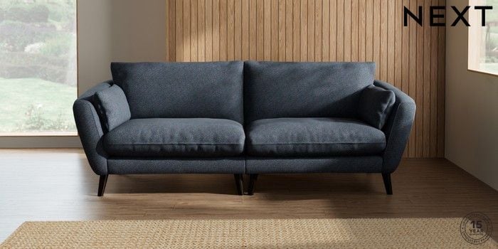 6.12.1 Buy Orlo Relaxed Sit 4 Seater Sofa Tweedy Chenille Navy Blue Retro Tapered - Dark from the Next UK online shop Click here to use our accessible website