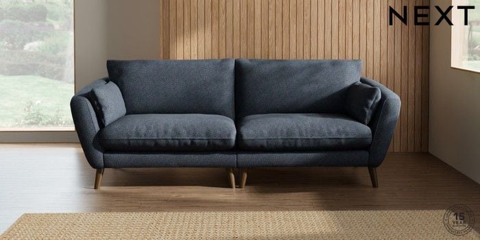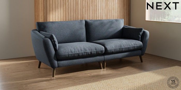 6.12.1 Buy Orlo Relaxed Sit 4 Seater Sofa Tweedy Chenille Navy Blue Retro Tapered - Mid from the Next UK online shop Click here to use our accessible website