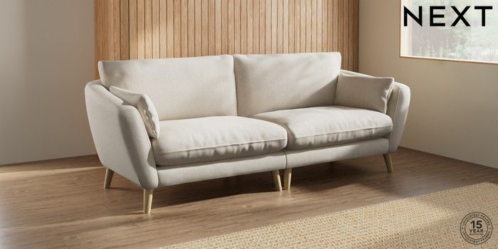 6.12.1 Buy Orlo Relaxed Sit 4 Seater Sofa Tweedy Chenille Oyster Retro Tapered - Light from the Next UK online shop Click here to use our accessible website