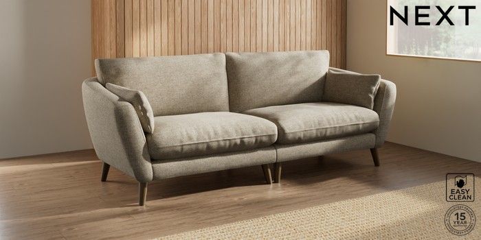 6.12.1 Buy Orlo Relaxed Sit 4 Seater Sofa Woven Chenille Easy Clean Mid Natural Retro Tapered - Mid from the Next UK online shop Click here to use our accessible website
