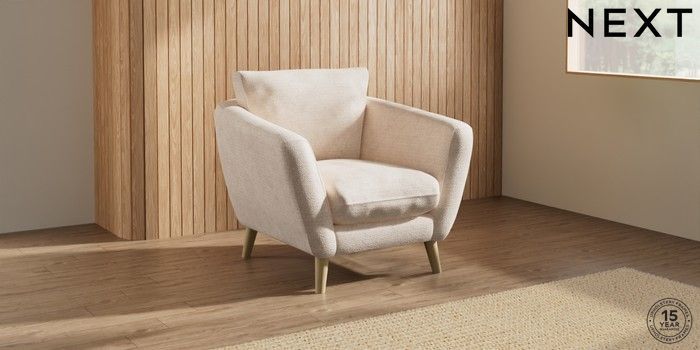6.12.1 Buy Orlo Relaxed Sit Armchair Boucle Chenille Oyster Retro Tapered - Light from the Next UK online shop Click here to use our accessible website