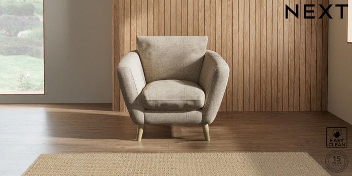 6.12.1 Buy Orlo Relaxed Sit Armchair Boucle Weave Easy Clean Dark Natural Retro Tapered - Light from the Next UK online shop Click here to use our accessible website