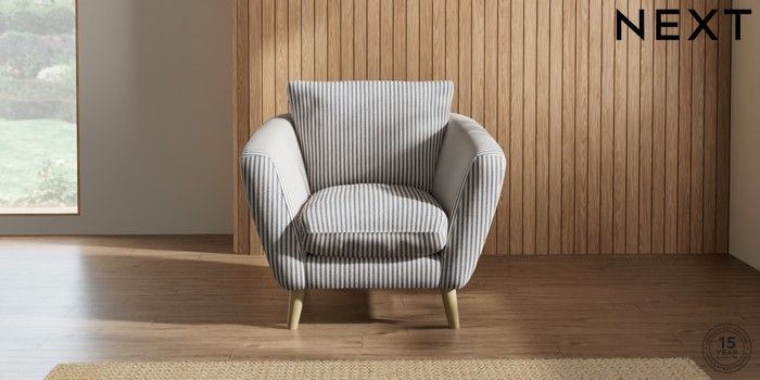 7.3.1 Buy Orlo Relaxed Sit Armchair Chenille Stripe Slate Blue Retro Tapered - Light from the Next UK online shop Click here to use our accessible website