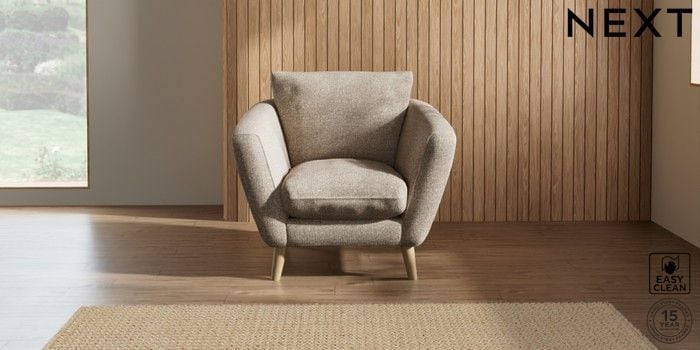 6.12.1 Buy Orlo Relaxed Sit Armchair Chunky Boucle Easy Clean Mid Natural Retro Tapered - Light from the Next UK online shop Click here to use our accessible website