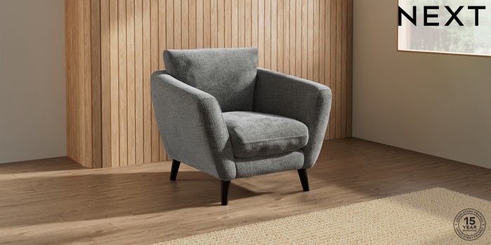 6.12.1 Buy Orlo Relaxed Sit Armchair Chunky Chenille Dark Grey Retro Tapered - Dark from the Next UK online shop Click here to use our accessible website