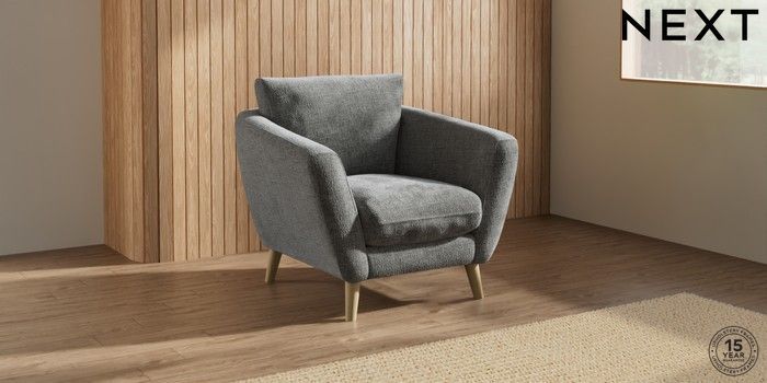 6.12.1 Buy Orlo Relaxed Sit Armchair Chunky Chenille Dark Grey Retro Tapered - Light from the Next UK online shop Click here to use our accessible website