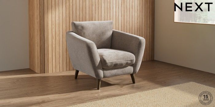 6.12.1 Buy Orlo Relaxed Sit Armchair Chunky Chenille Light Dove Retro Tapered - Mid from the Next UK online shop Click here to use our accessible website