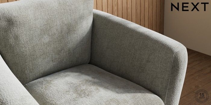 6.12.1 Buy Orlo Relaxed Sit Armchair Chunky Chenille Light Grey Retro Tapered - Dark Brown from the Next UK online shop Click here to use our accessible website