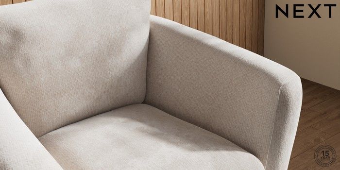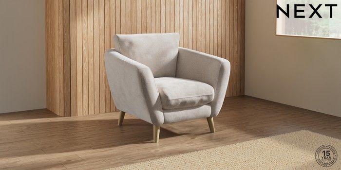 6.12.1 Buy Orlo Relaxed Sit Armchair Chunky Chenille Oyster Retro Tapered - Light from the Next UK online shop Click here to use our accessible website