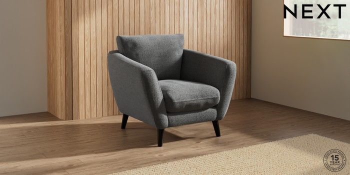 6.12.1 Buy Orlo Relaxed Sit Armchair Chunky Texture Dark Grey Retro Tapered - Dark from the Next UK online shop Click here to use our accessible website