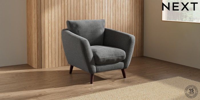 6.12.1 Buy Orlo Relaxed Sit Armchair Chunky Texture Dark Grey Retro Tapered - Dark Brown from the Next UK online shop Click here to use our accessible website